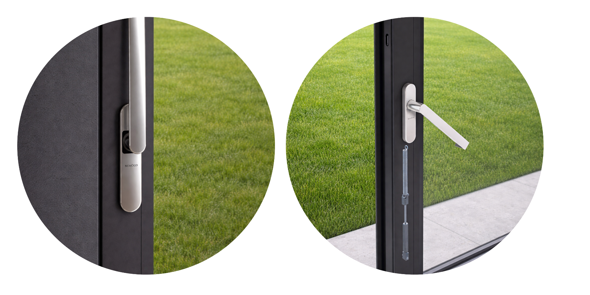 Možnosť použitia systémových komponentov Schüco SmartStop a SmartClose, ktoré zabezpečujú komfortné a bezpečné dovieranie krídla.