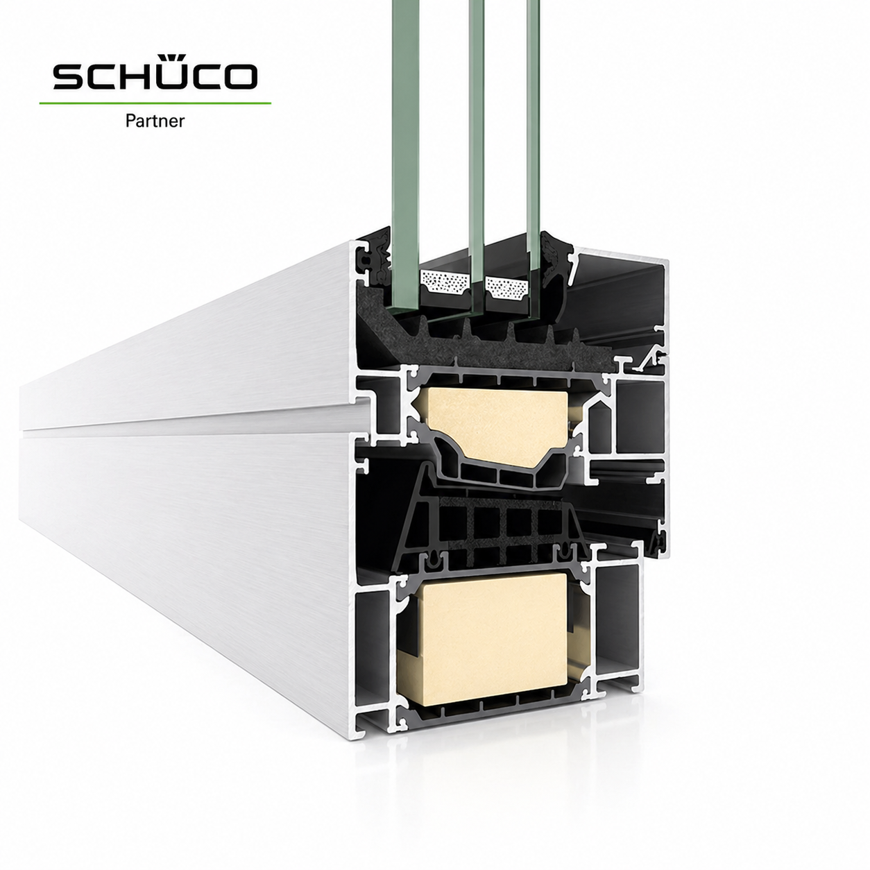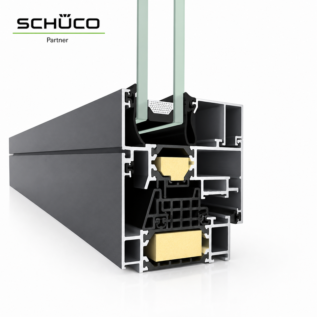 Hliníkové okná Schüco AWS 90.SI+ ponúkajú výnimočnú tepelnú izoláciu na úrovni pasívnych konštrukcií. Systém dosahuje veľmi nízky koeficient prestupu tepla rámu Uf = 0,71 W/m²K, čo zabezpečuje vysokú energetickú efektívnosť a komfort bývania.